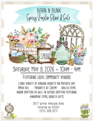 The Barn-n-Bunk Farm Market is a family-owned business established by Tom and Bev Theobald in 1992. The farm is located at 3677 Wayne-Madison Road, Trenton, Ohio. This farm has been "home" to Tom's dad in the 1930"s and to Bev's family since 1941. In 1975, Tom and Bev moved here to raise their young family on the farm. Today, Tom, Bev and son Brian work at the Barn, full time. Many other family members are also involved parttime.